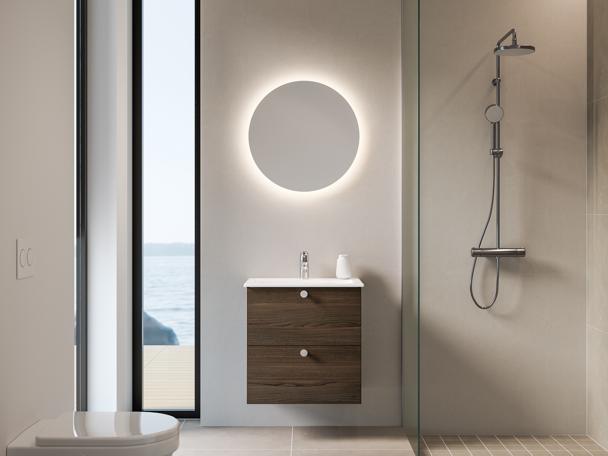 Ett badrum där ALLT passar ihop – alltid: Temals tvättställ, spegelskåp och förvaringsmöbler kan kombineras i mått och färger.